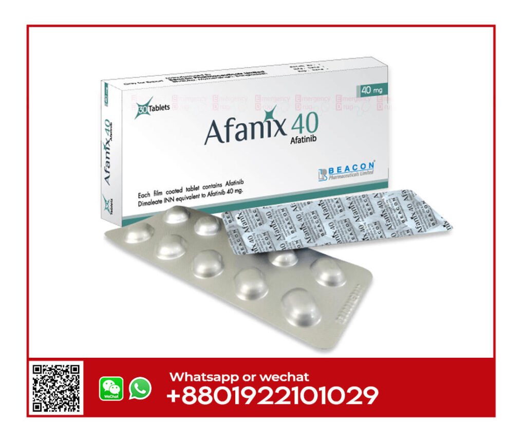 Generic Afatinib 40 mg is made in Bangladesh by beacon pharmaceuticals under trade name afanix 40 mgTofacent 5 MG (Tofacitinib) – 60 Tablets tablets, generic of gilotrif 40mg or xovoltib 40mg available under three more different strengths 20mg, 30mg & 50mg which are used to treat non-small cell lung cancer/ carcinoma cells spreading through other body parts within the body.