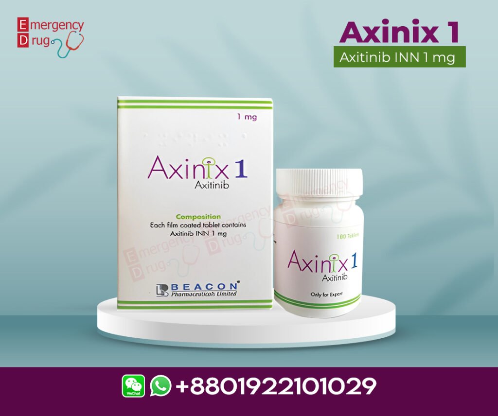 Axinix (Axitinib) use as first-line treatment of advanced renal cell carcinoma (RCC), a type of kidney cancer. This medicine is also used alone to treat advanced kidney cancer in patients (cancer medicine given by mouth or injection).