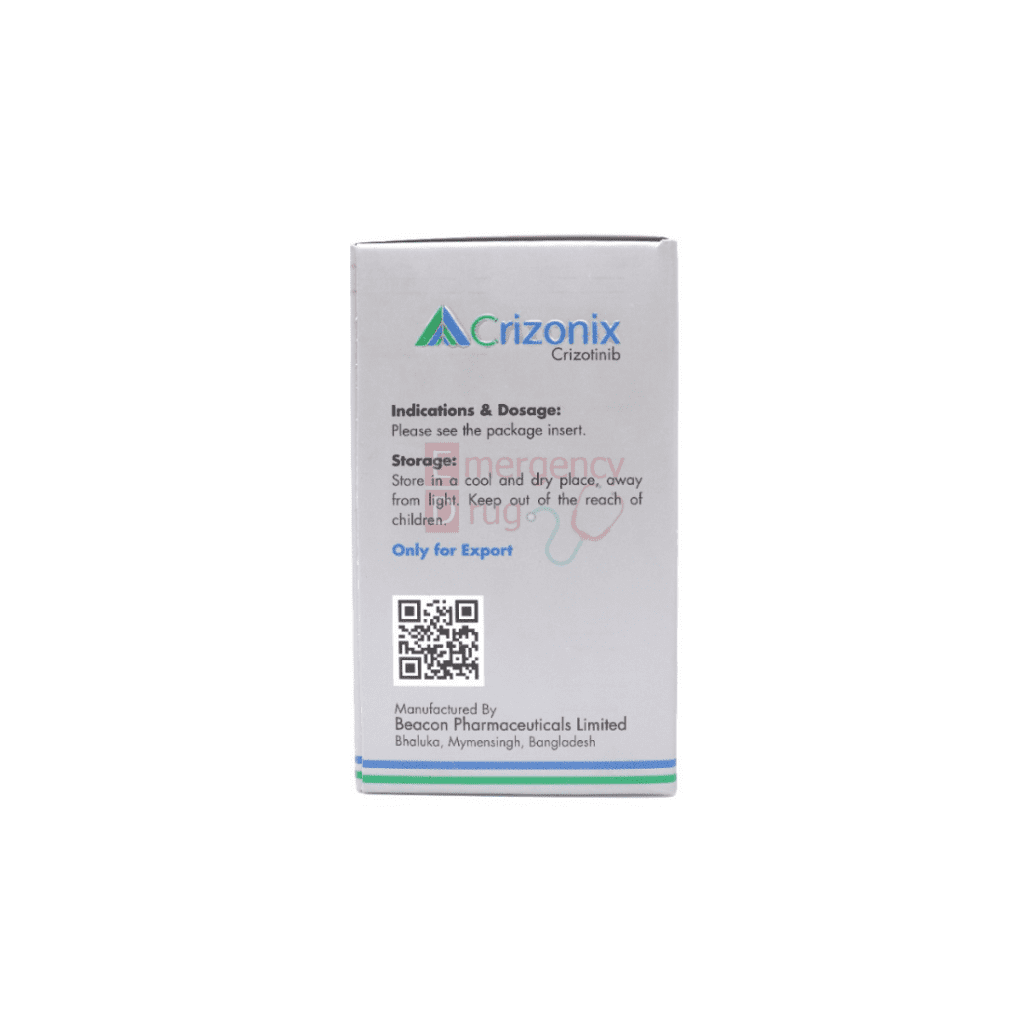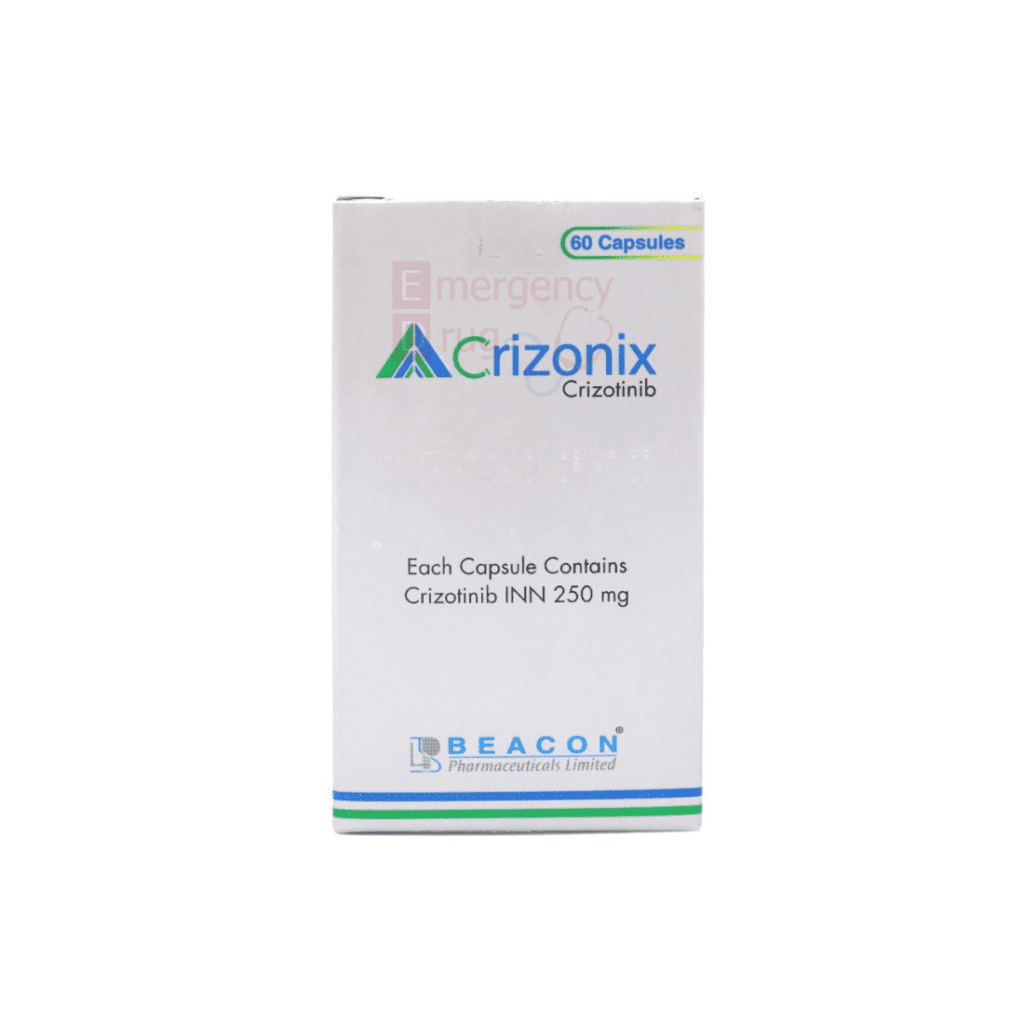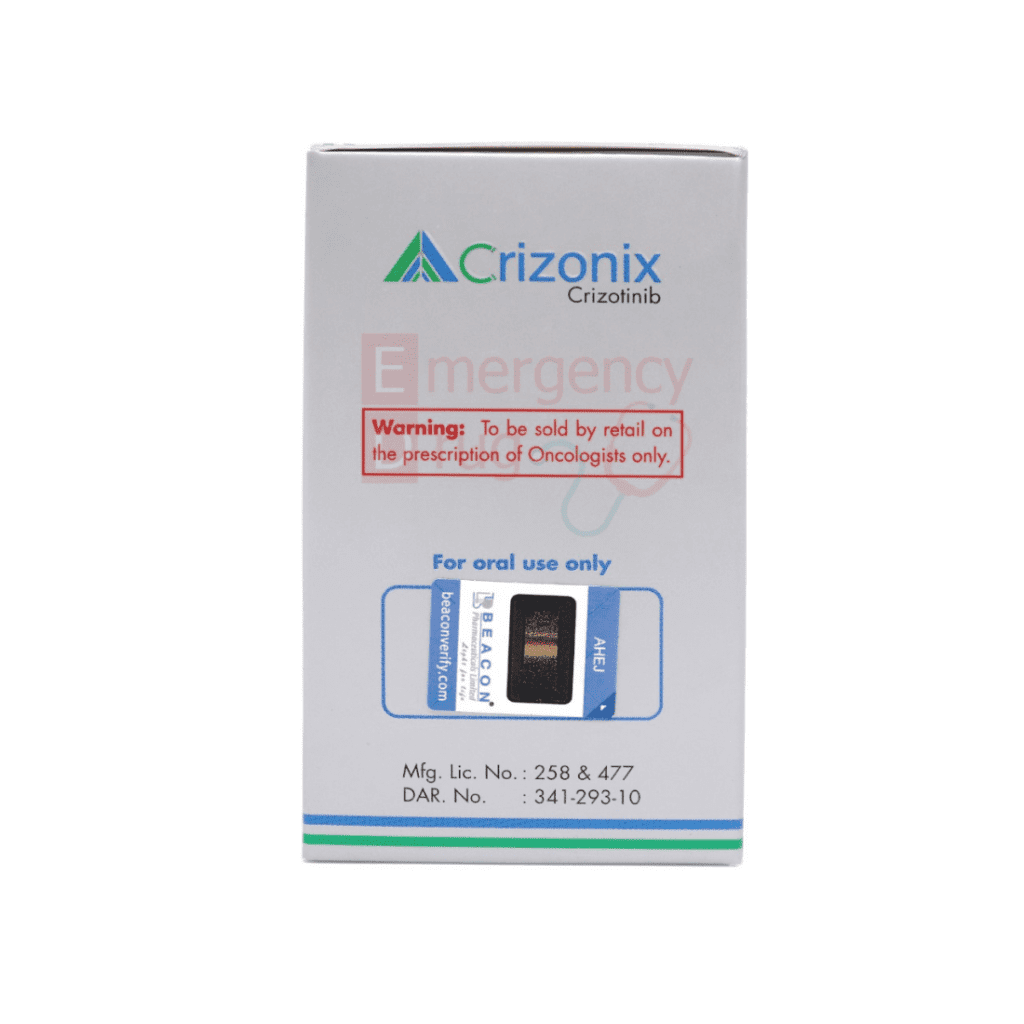 Crizonix 250 mg is an inhibitor of receptor tyrosine kinases, including ALK, Hepatocyte Growth Factor Receptor (HGFR, c-Met), ROS1 (c-ros), and Receptor d’Origine Nantais (RON). Translocations can affect the ALK gene resulting in the expression of oncogenic fusion proteins. The formation of ALK fusion proteins results in activation and dysregulation of the gene’s expression and signaling, increasing cell proliferation and survival in tumors expressing these proteins. Crizotinib demonstrated concentration-dependent inhibition of ALK, ROS1, and c-Met phosphorylation in cell-based assays using tumor cell lines and demonstrated antitumor activity in mice bearing tumor xenografts that expressed echinoderm microtubule-associated protein-like 4 (EML4)- or nucleophosmin (NPM)-ALK fusion proteins or c-Met.