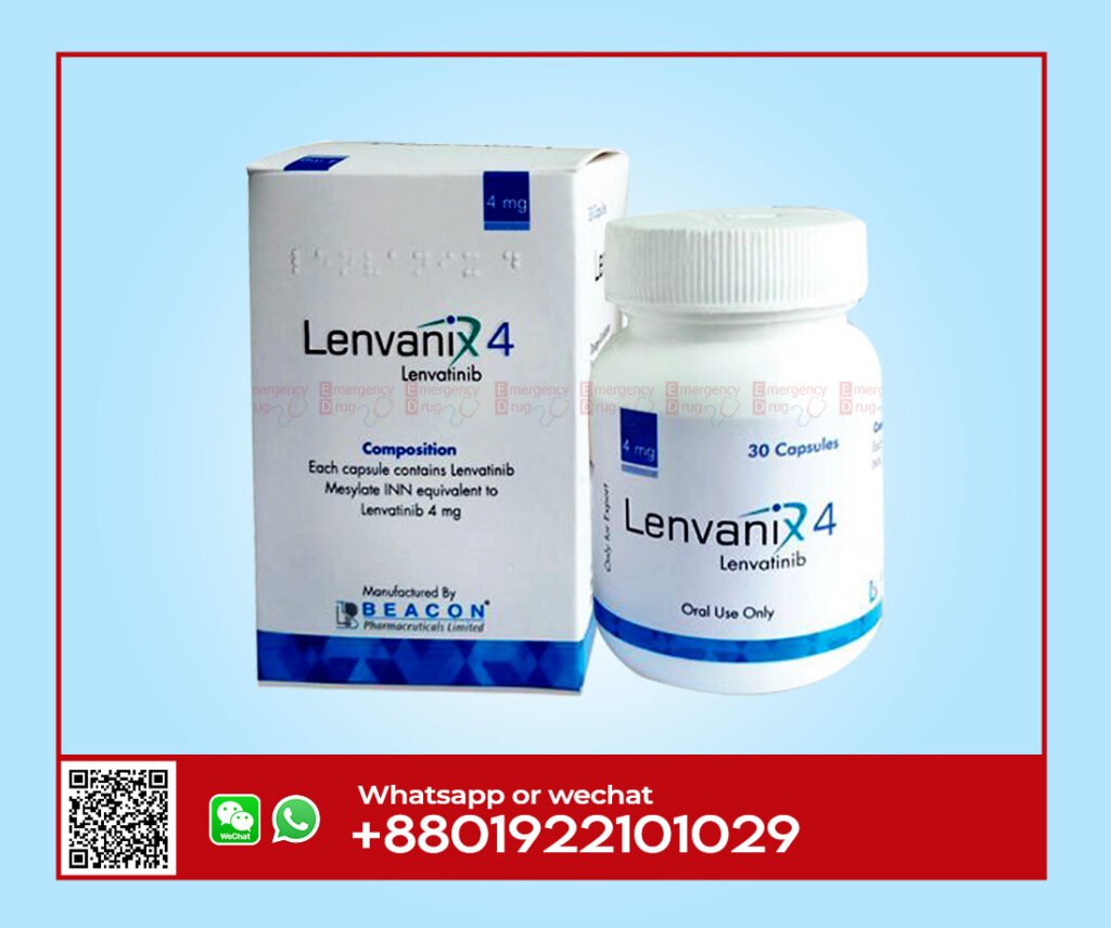 Lenvanix 4 mg (Lenvatinib) is a multi kinase inhibitor that interrupts the pathways of VEGFR1,VEGFR2 and VEGFR3.It use in the treatment of differentiated thyroid cancer (DTC), renal Cell Carcinoma and Hepatocellular Carcinoma (HCC). First new frontline treatment option for HCC approved in Japan.